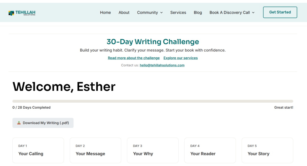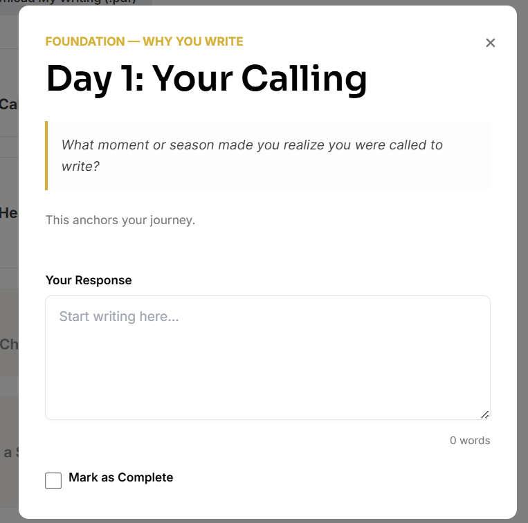 I wanted the 30-Day Writing Challenge to be more than a PDF or email prompts. It was to support three critical outcomes for aspiring authors: